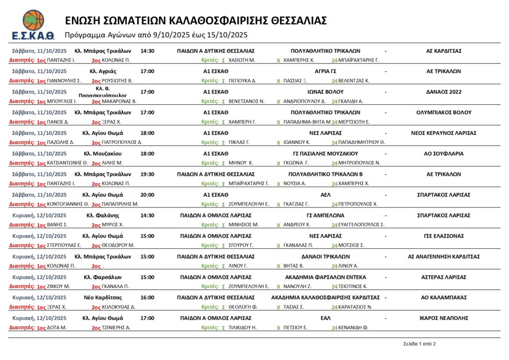 Η Ένωση Σωματείων Καλαθοσφαίρισης Θεσσαλίας (Ε.Σ.ΚΑ.Θ.) ενημερώνει τα σωματεία – μέλη της ότι, σύμφωνα με σχετική ενημέρωση της Ελληνικής Ομοσπονδίας Καλαθοσφαίρισης (Ε.Ο.Κ.), από την Παρασκευή 24 Οκτωβρίου 2025 ξεκινά η