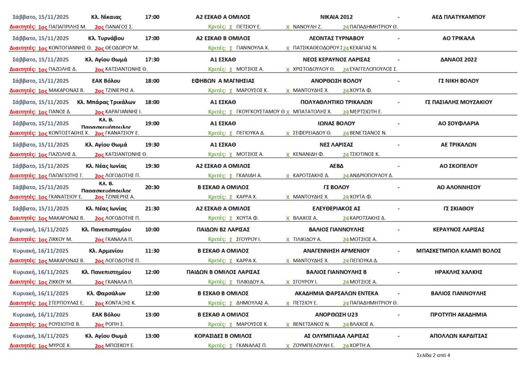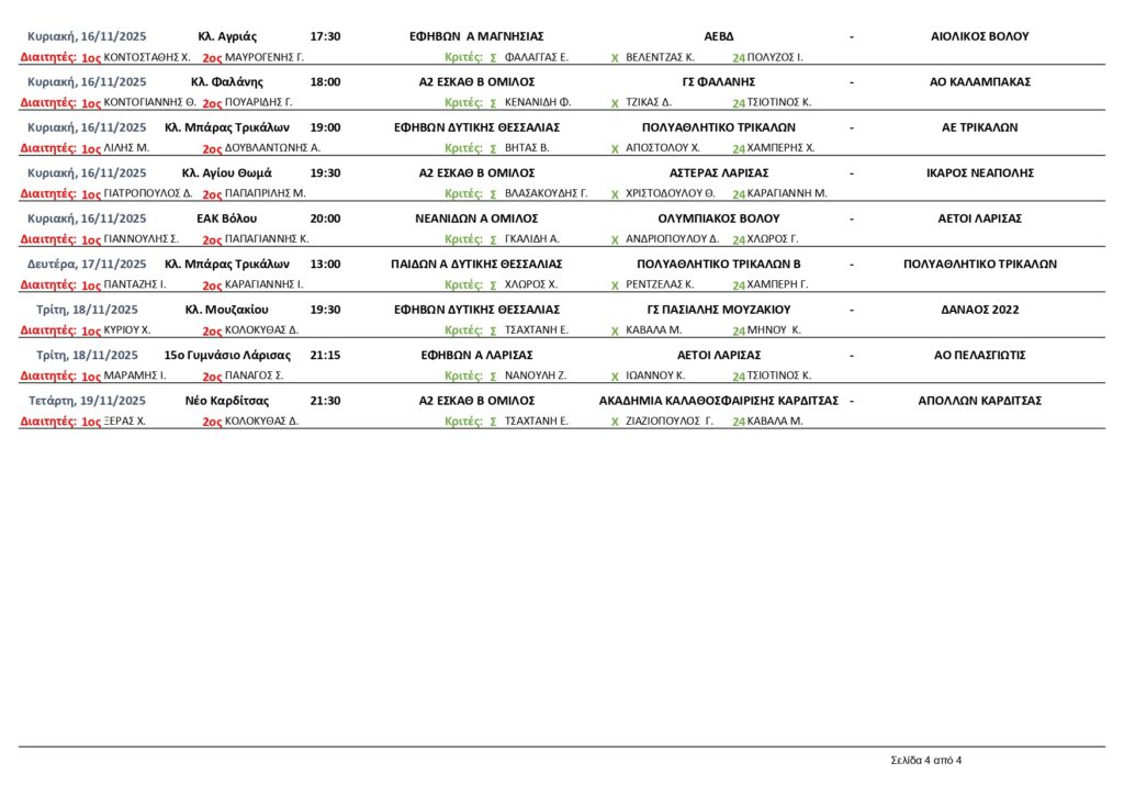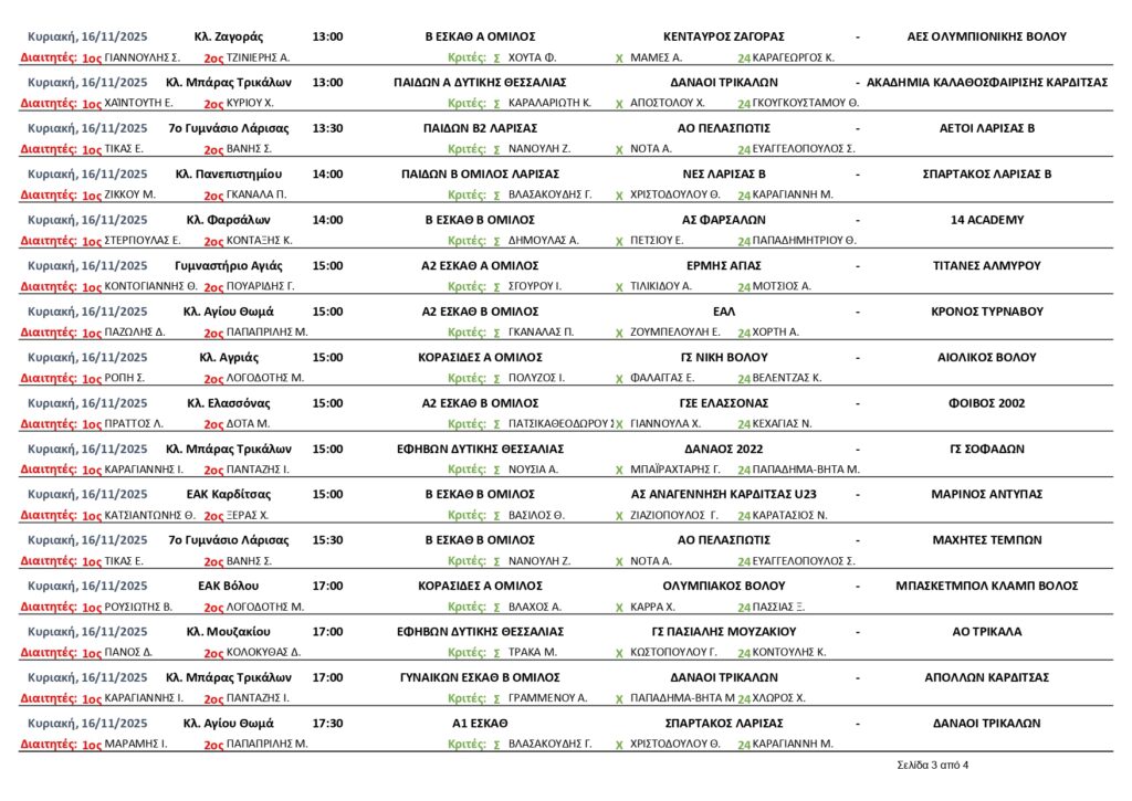 Ιωνας Βόλου – Δαναός 2022 101-61 Πολυαθλητικό Τρικάλων – Ολυμπιακός Βόλου 66-81 Νες Λάρισας – Νέος Κεραυνός 76-86 Αγριά – ΑΕ Τρικάλων 76-63 Πασιαλής Μουζακίου