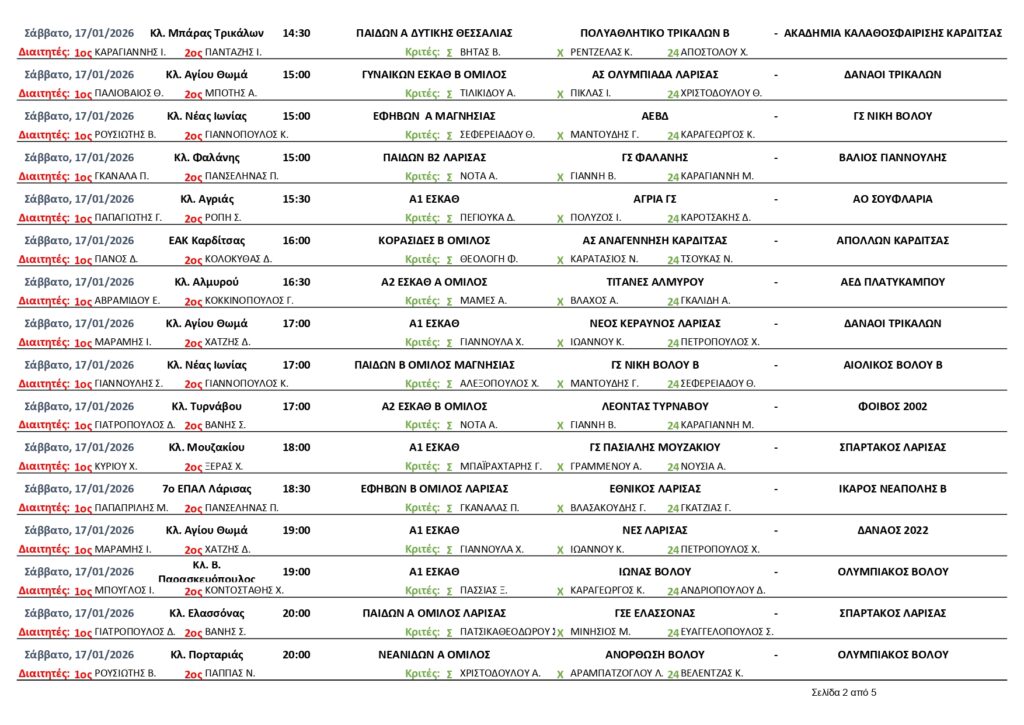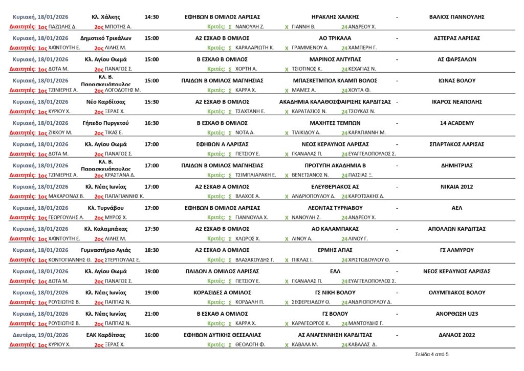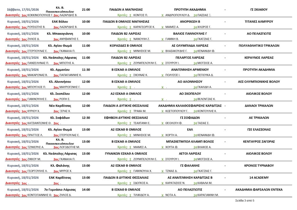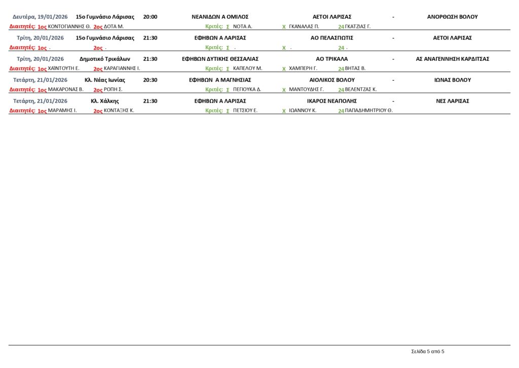 ΕΦΗΒΩΝ Α ΜΑΓΝΗΣΙΑΣ ΝΙΚΗ ΒΟΛΟΥ – ΑΙΟΛΙΚΟΣ 74-79 ΙΩΝΑΣ ΒΟΛΟΥ – ΑΝΟΡΘΩΣΗ 66-60 ΑΕΒΔ – ΟΛΥΜΠΙΑΚΟΣ ΒΟΛΟΥ 53-96 ΕΦΗΒΩΝ ΔΥΤΙΚΗΣ ΘΕΣΣΑΛΙΑΣ ΑΝΑΓΕΝΝΗΣΗ ΚΑΡΔΙΤΣΑΣ – ΑΟ ΤΡΙΚΑΛΑ 51-76 ΣΟΦΑΔΕΣ –