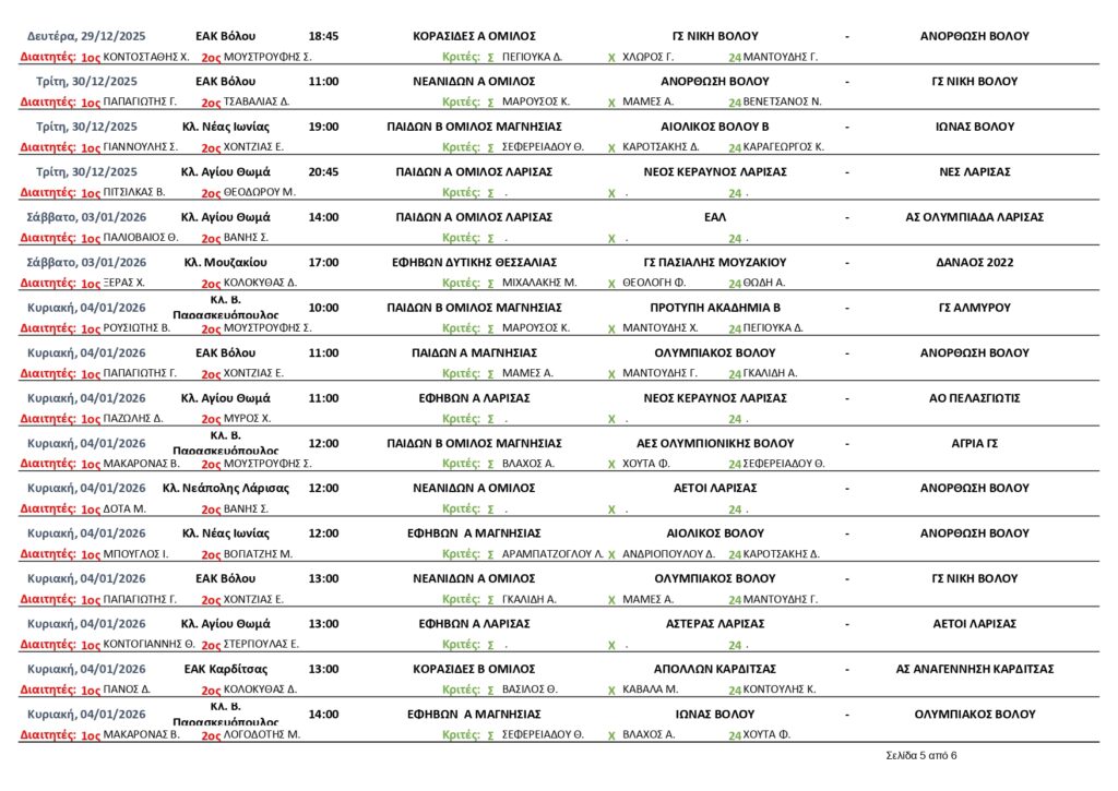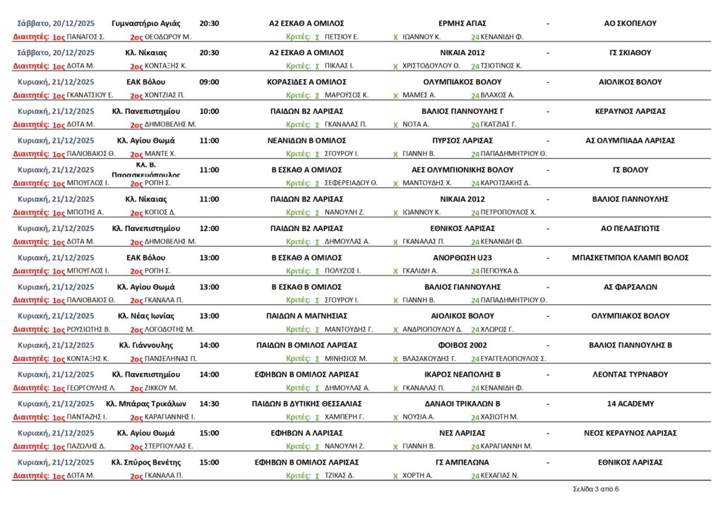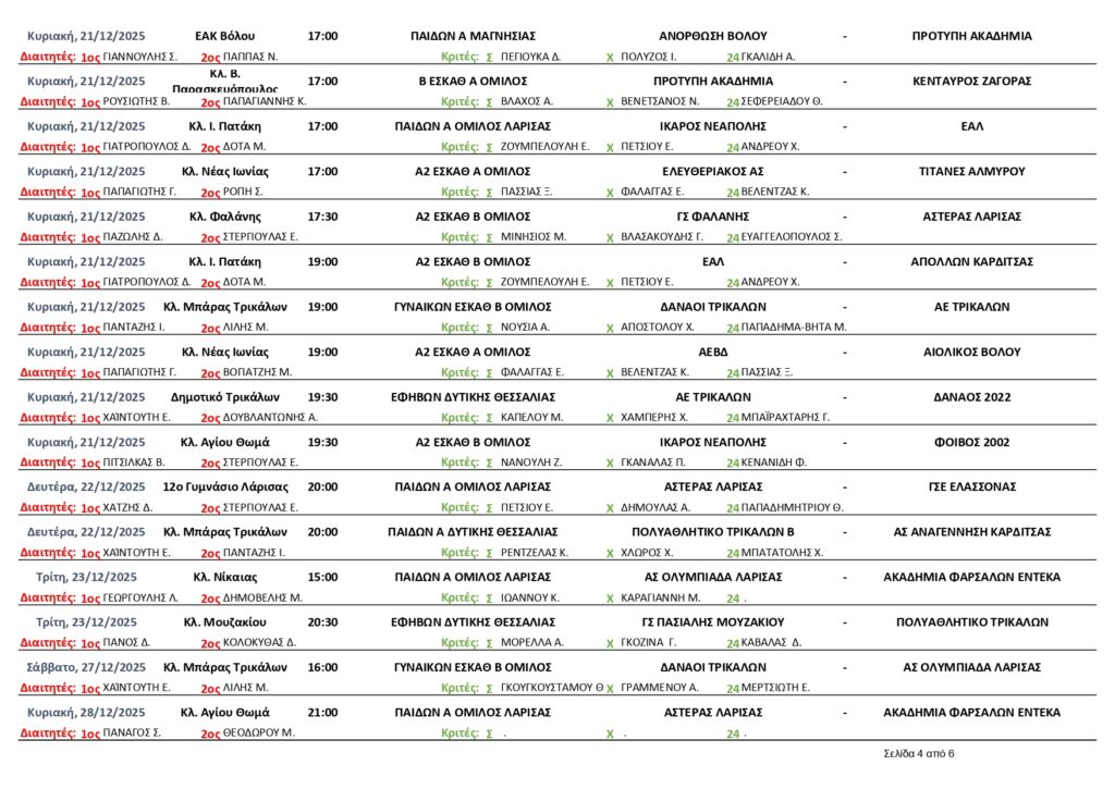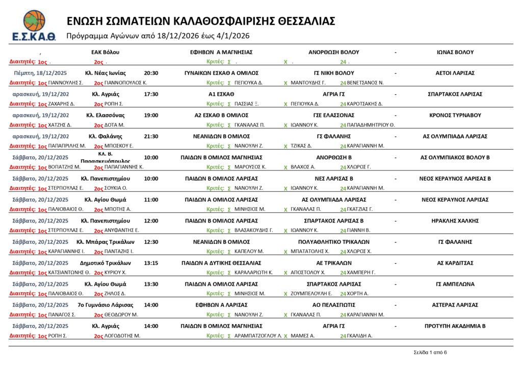 Αρχική | Διάφορα | ΟΡΙΣΜΟΙ ΔΙΑΙΤΗΤΩΝ -ΚΡΙΤΩΝ ΑΓΩΝΩΝ ΕΣΚΑΘ (18/12/25-4/1/2026)