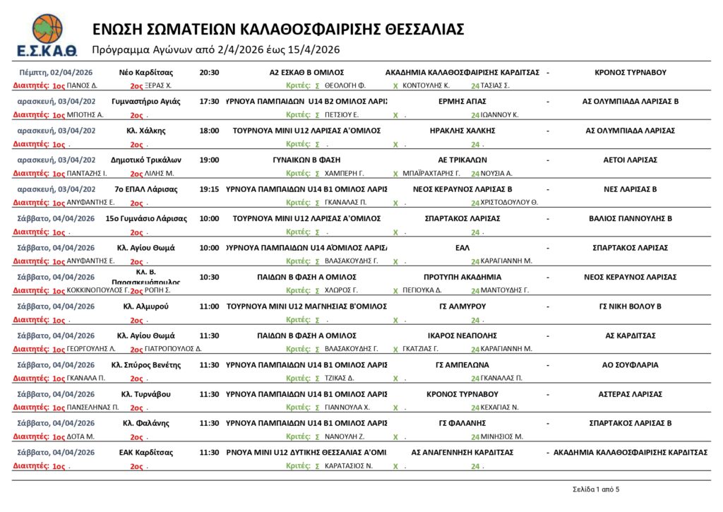 Αρχική | ΟΡΙΣΜΟΙ | ΟΡΙΣΜΟΙ ΔΙΑΙΤΗΤΩΝ – ΚΡΙΤΩΝ ΑΓΩΝΩΝ ΕΣΚΑΘ (2-8/4/2026)
