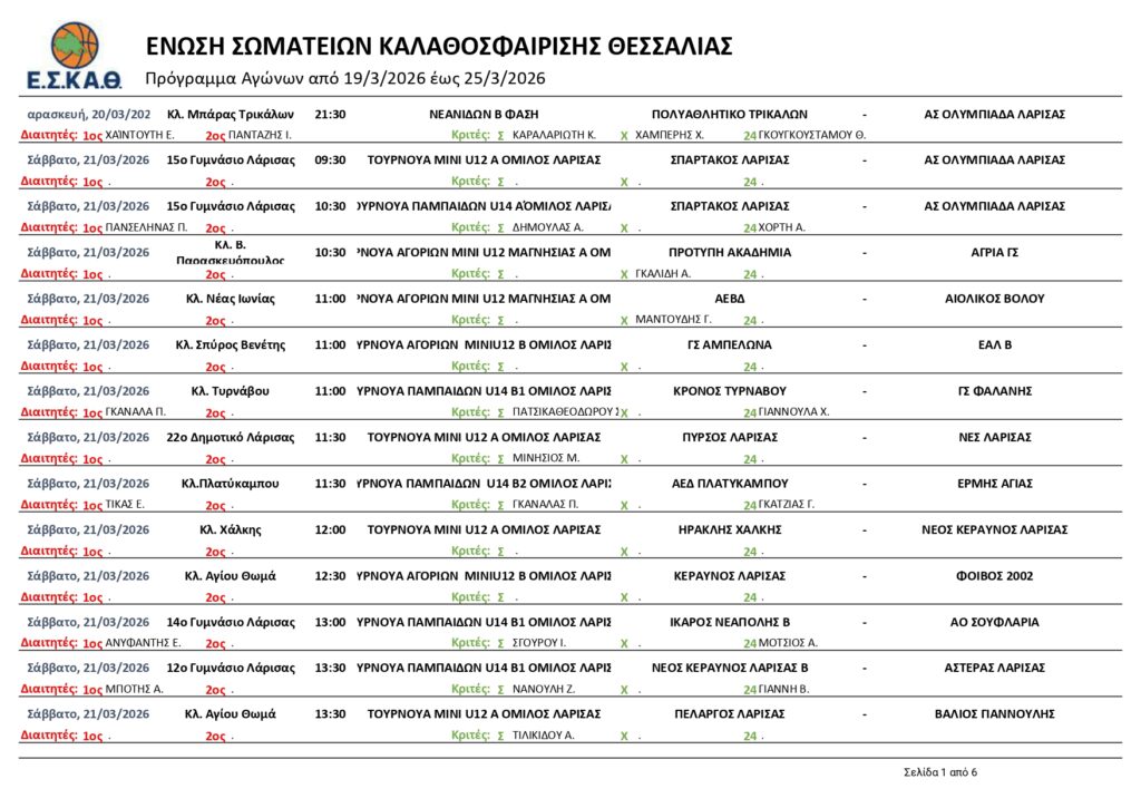 Αρχική | ΟΡΙΣΜΟΙ | ΟΡΙΣΜΟΣ ΔΙΑΙΤΗΤΩΝ – ΚΡΙΤΩΝ ΑΓΩΝΩΝ ΕΣΚΑΘ (19-24/3/2026)