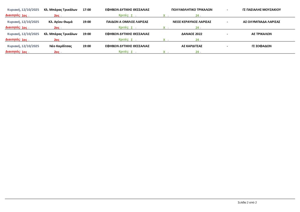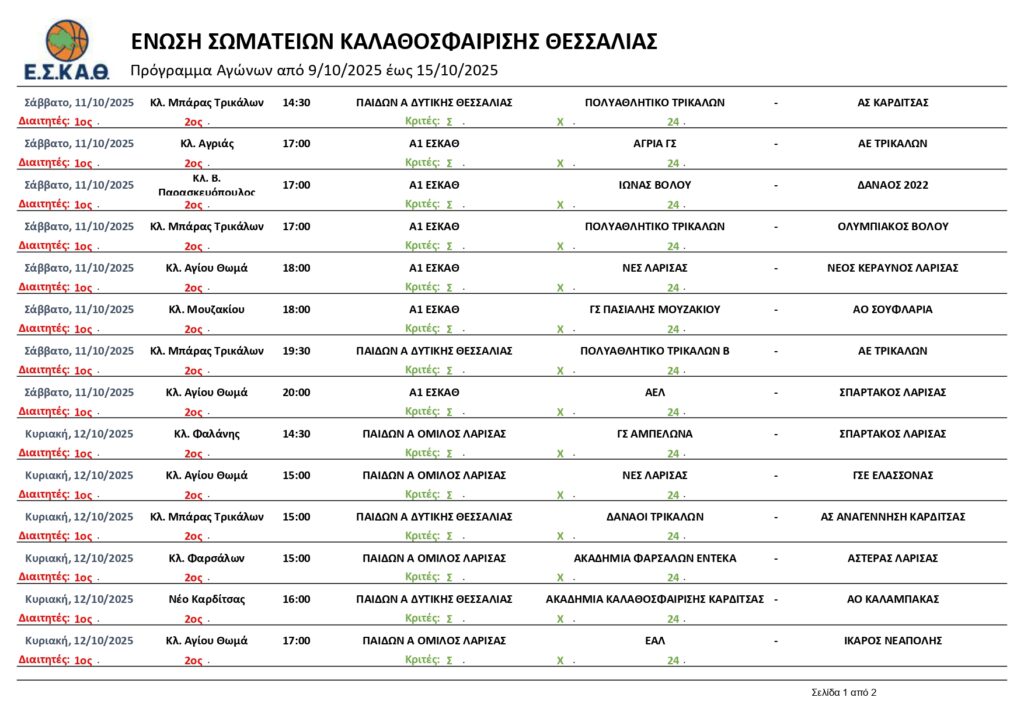 Αρχική | Διάφορα | ΠΡΟΓΡΑΜΜΑ ΑΓΩΝΩΝ ΕΣΚΑΘ 11-12/10/2025