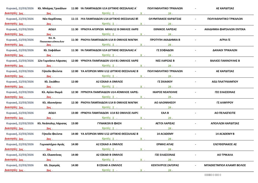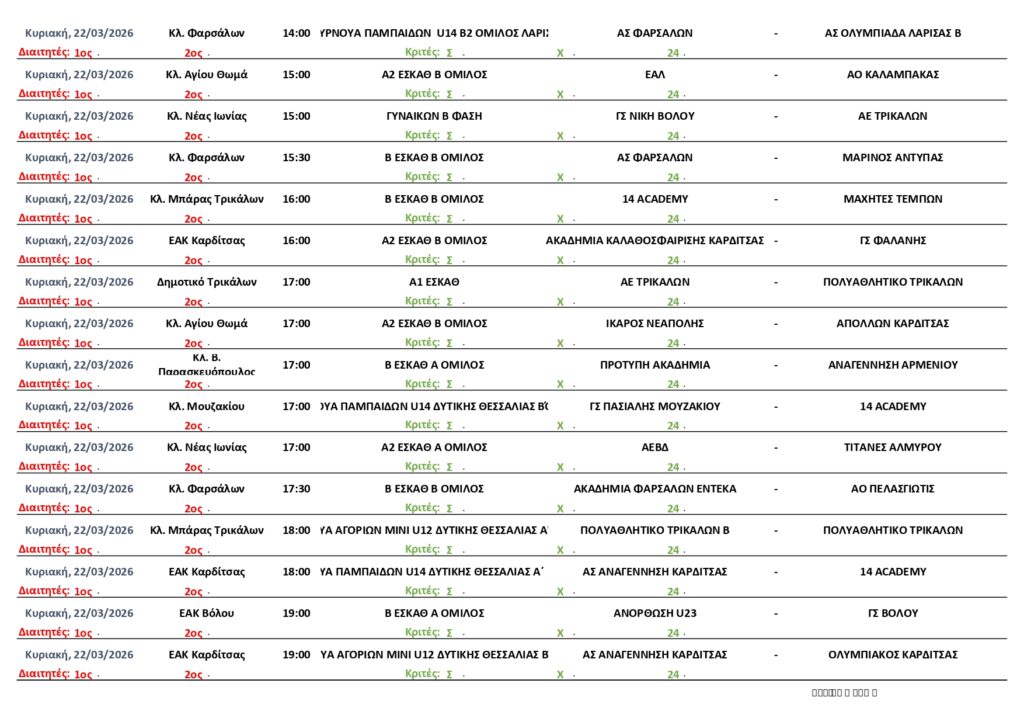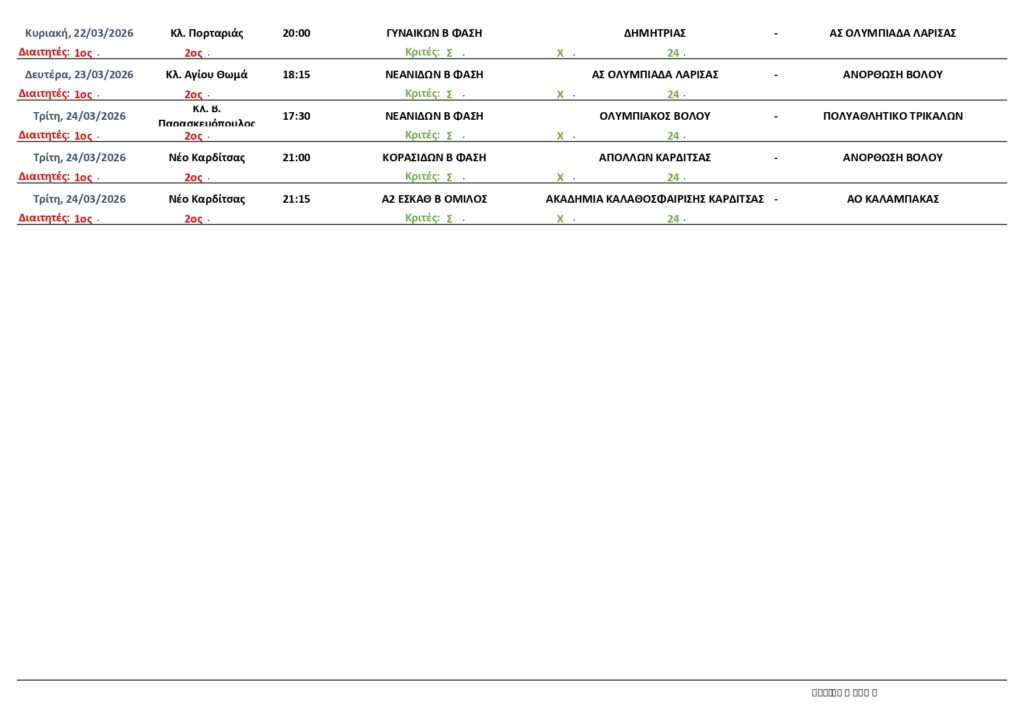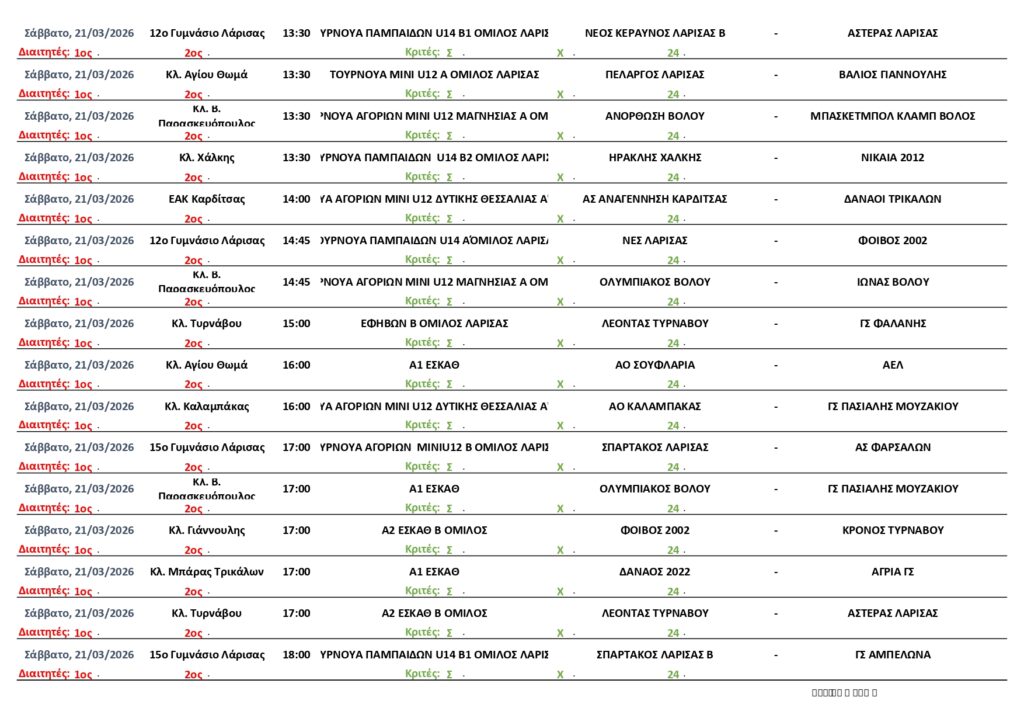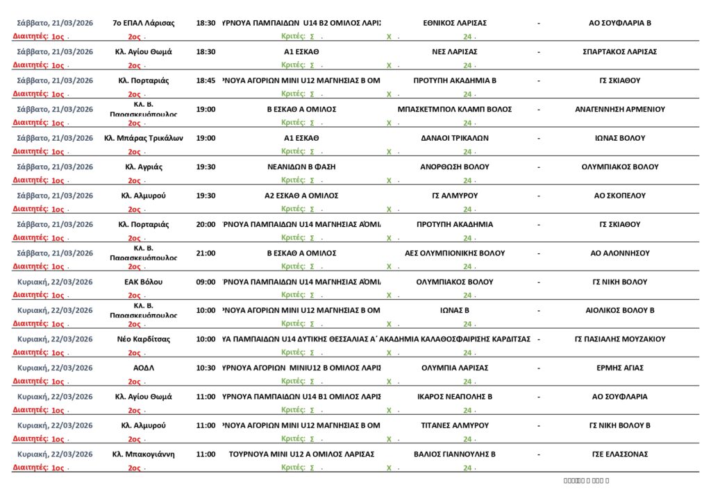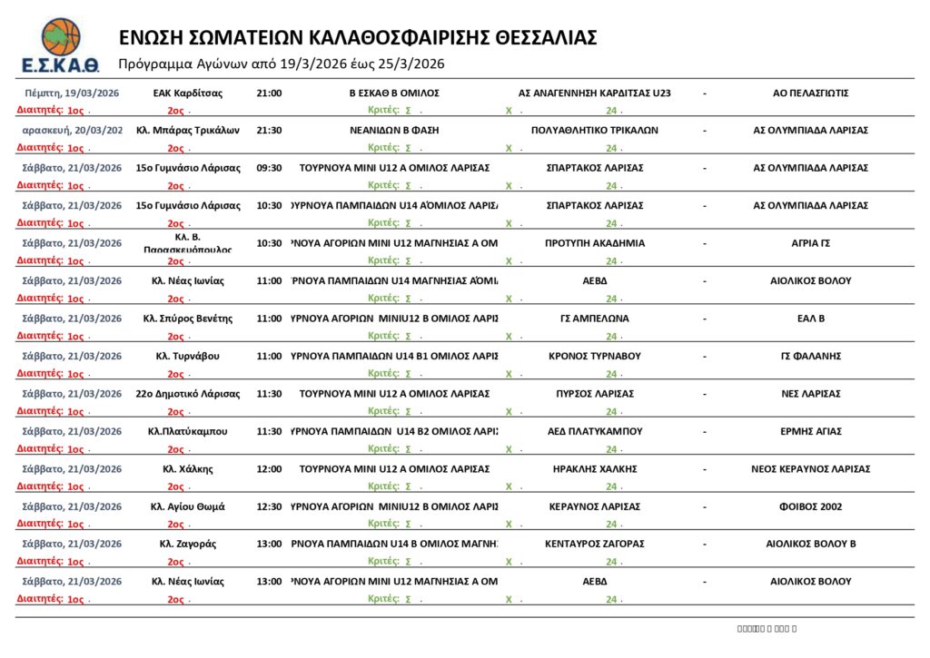 Αρχική | ΠΡΟΓΡΑΜΜΑ | ΠΡΟΓΡΑΜΜΑ ΑΓΩΝΩΝ ΕΣΚΑΘ (19-24/3/2026)