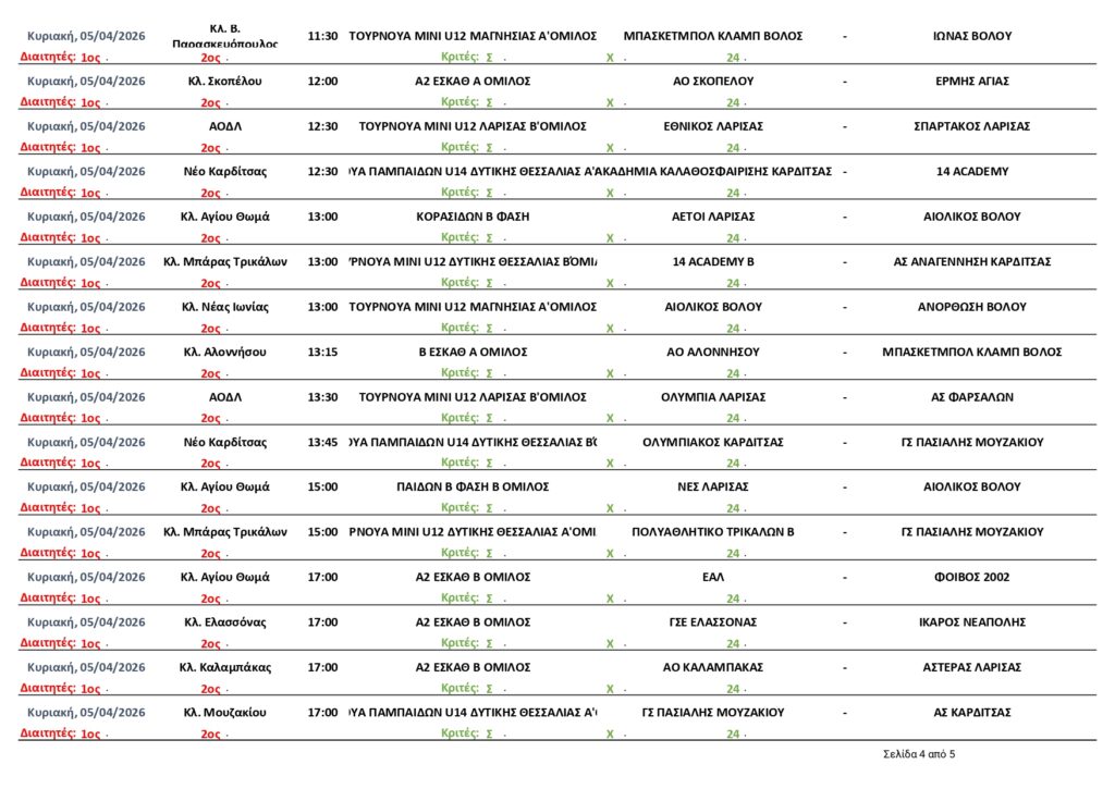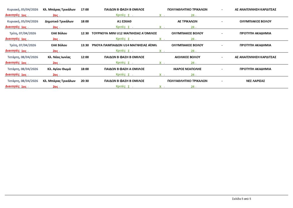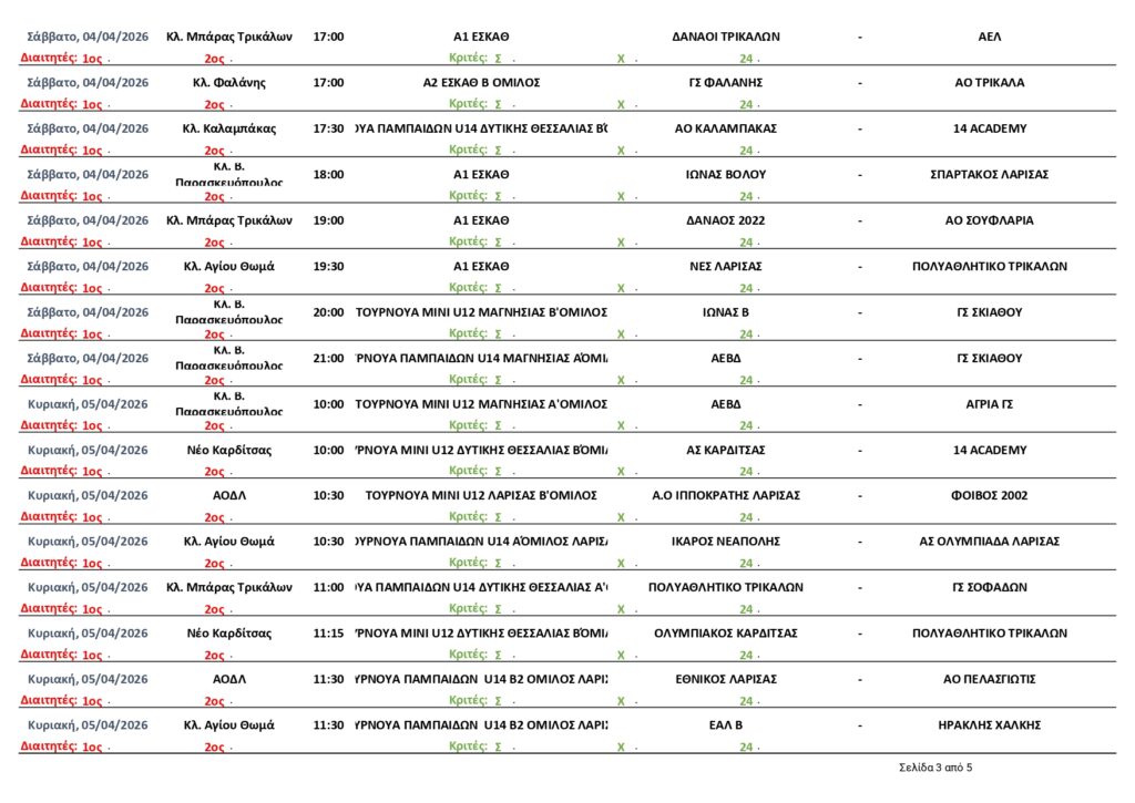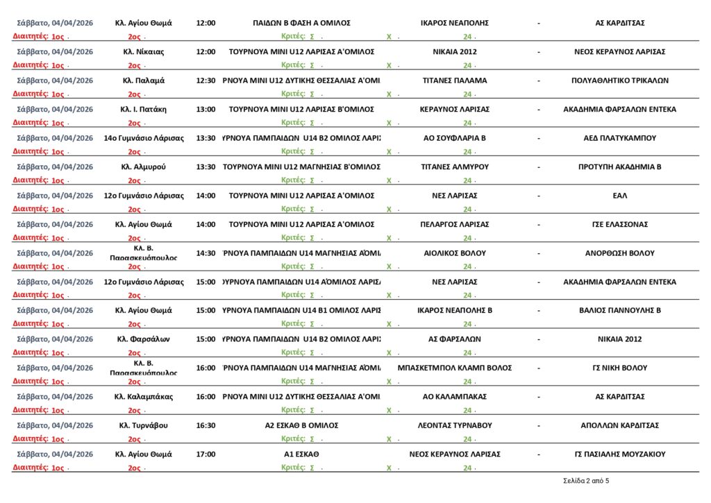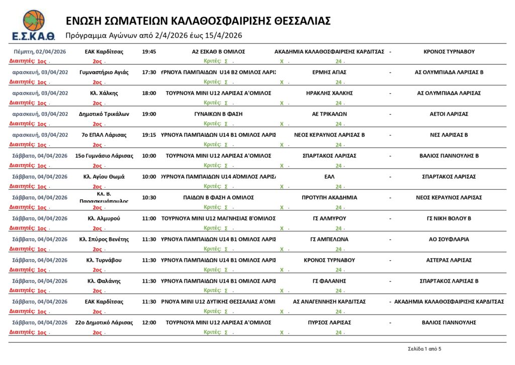Αρχική | ΠΡΟΓΡΑΜΜΑ | ΠΡΟΓΡΑΜΜΑ ΑΓΩΝΩΝ ΕΣΚΑΘ (2-8/4/2026)