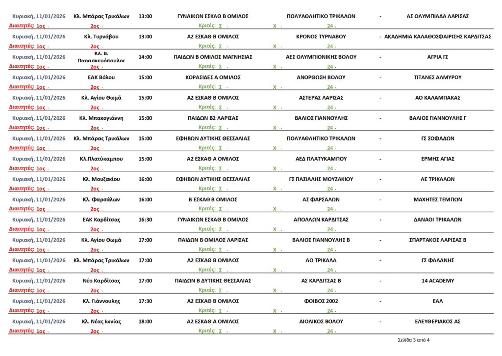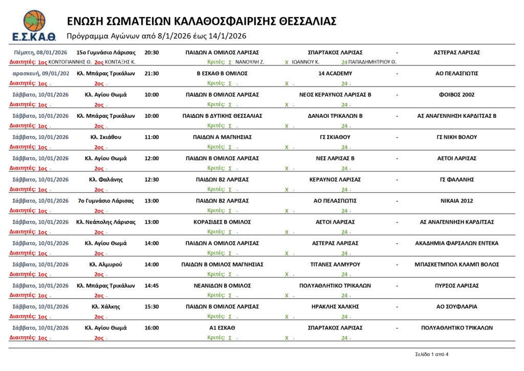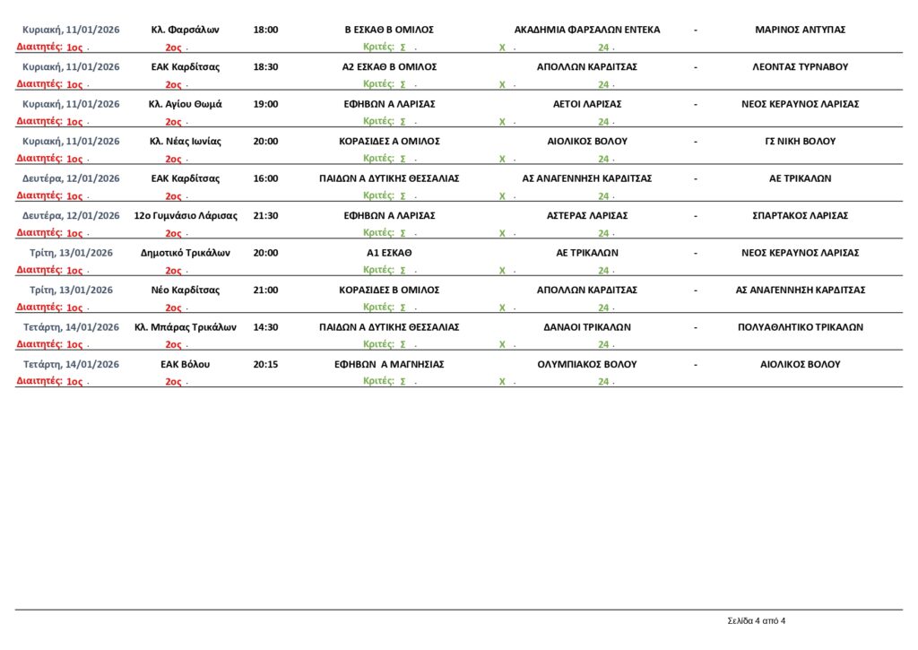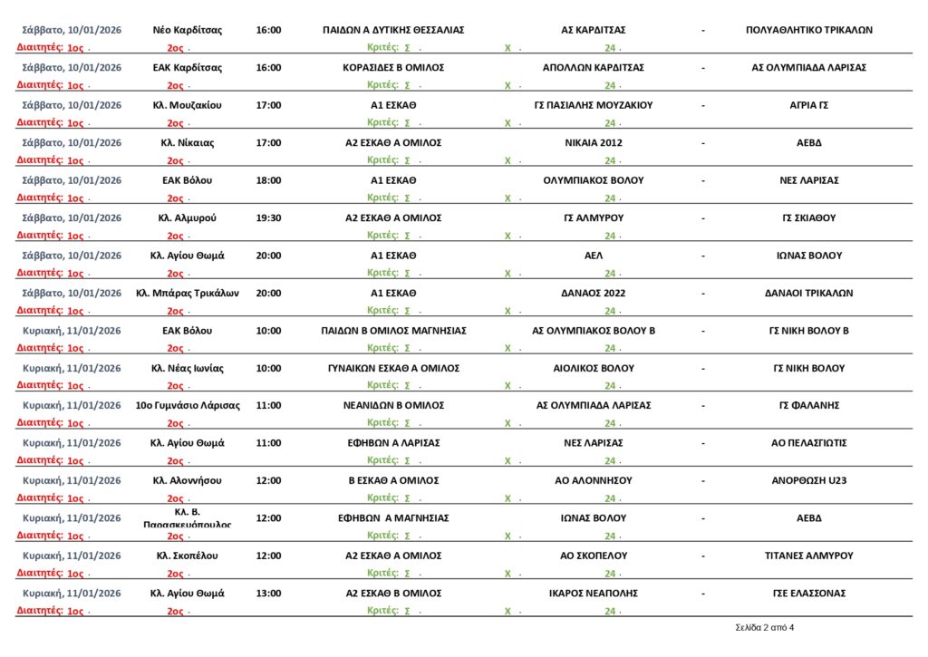 Αρχική | Διάφορα | ΠΡΟΓΡΑΜΜΑ ΑΓΩΝΩΝ ΕΣΚΑΘ (9-14/1/2026)